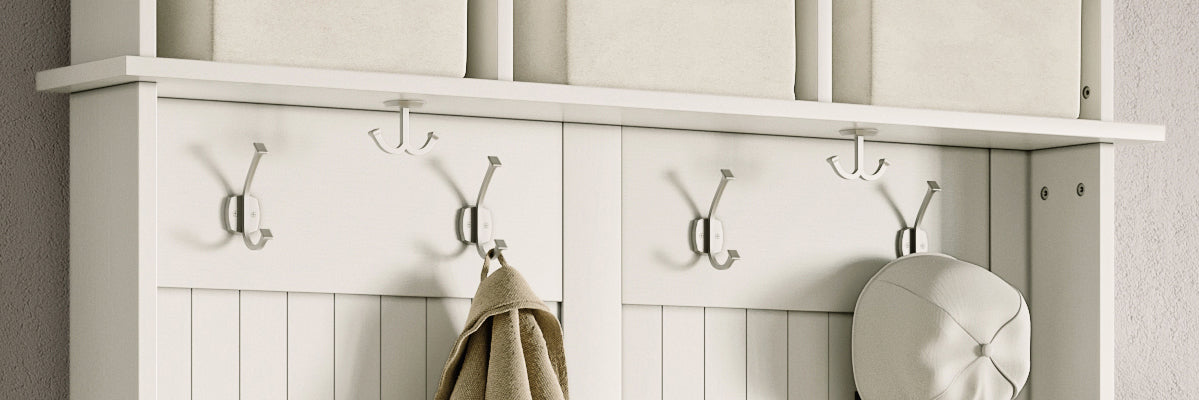 • Whether you have a narrow hallway, a compact mudroom hall tree area, or an apartment entry, our slim-profile pieces maximize function in minimal space.