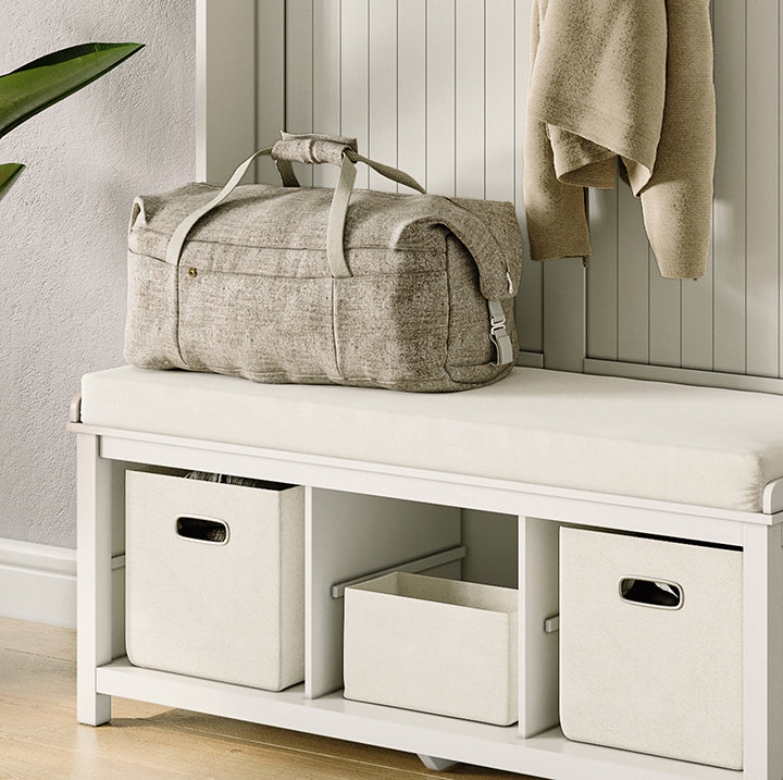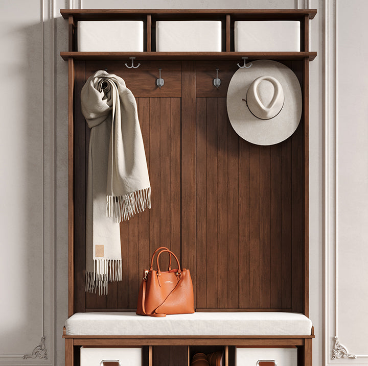 • Get essential seating, robust storage, and undeniable style without overcrowding your entryway.