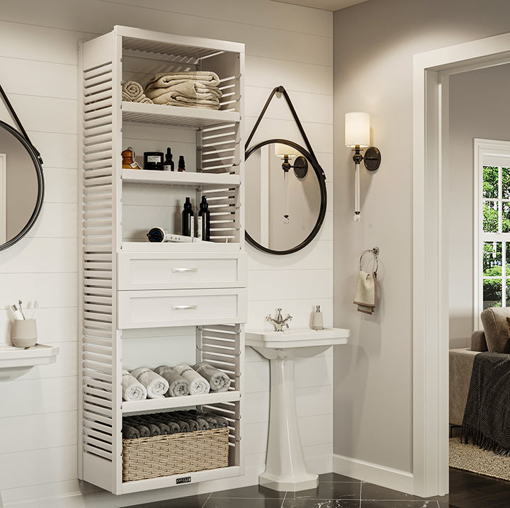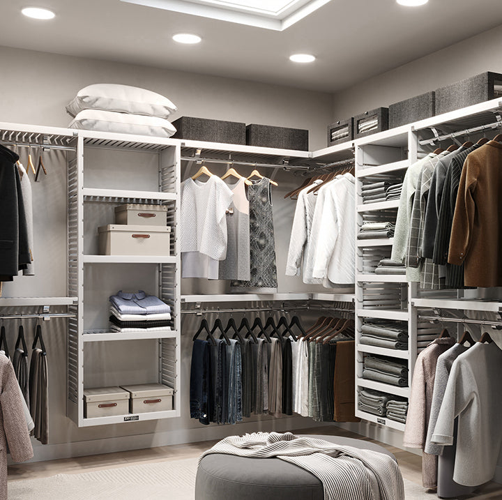 Don't let the word "custom" intimidate you. John Louis Home empowers DIYers to achieve a custom-looking closet with manageable installation. Our systems are designed for a tailored fit, with professional results.