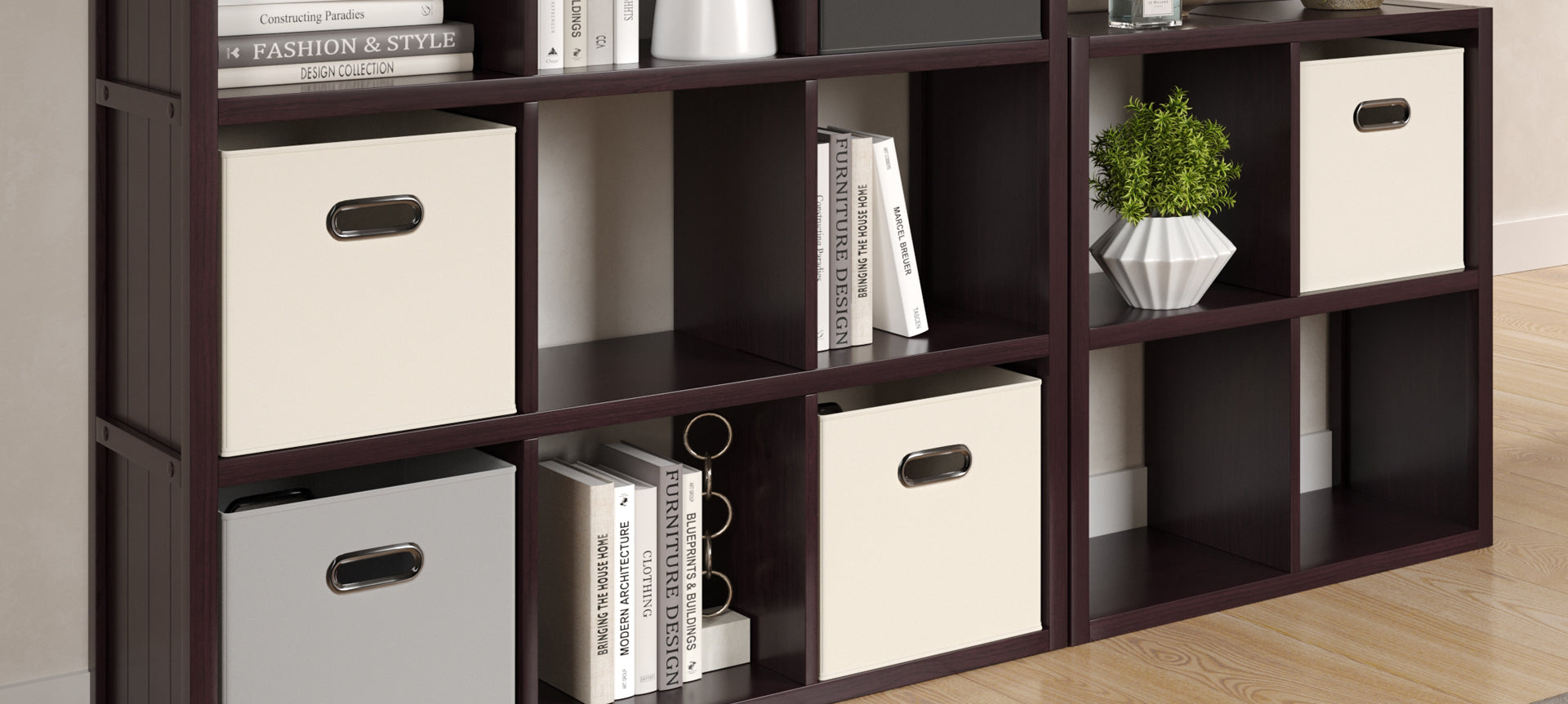 Features 11.5in. (W) x 11.75in. (D) x 12in. (H) cube spaces to fit most fabric cube storage bin types.