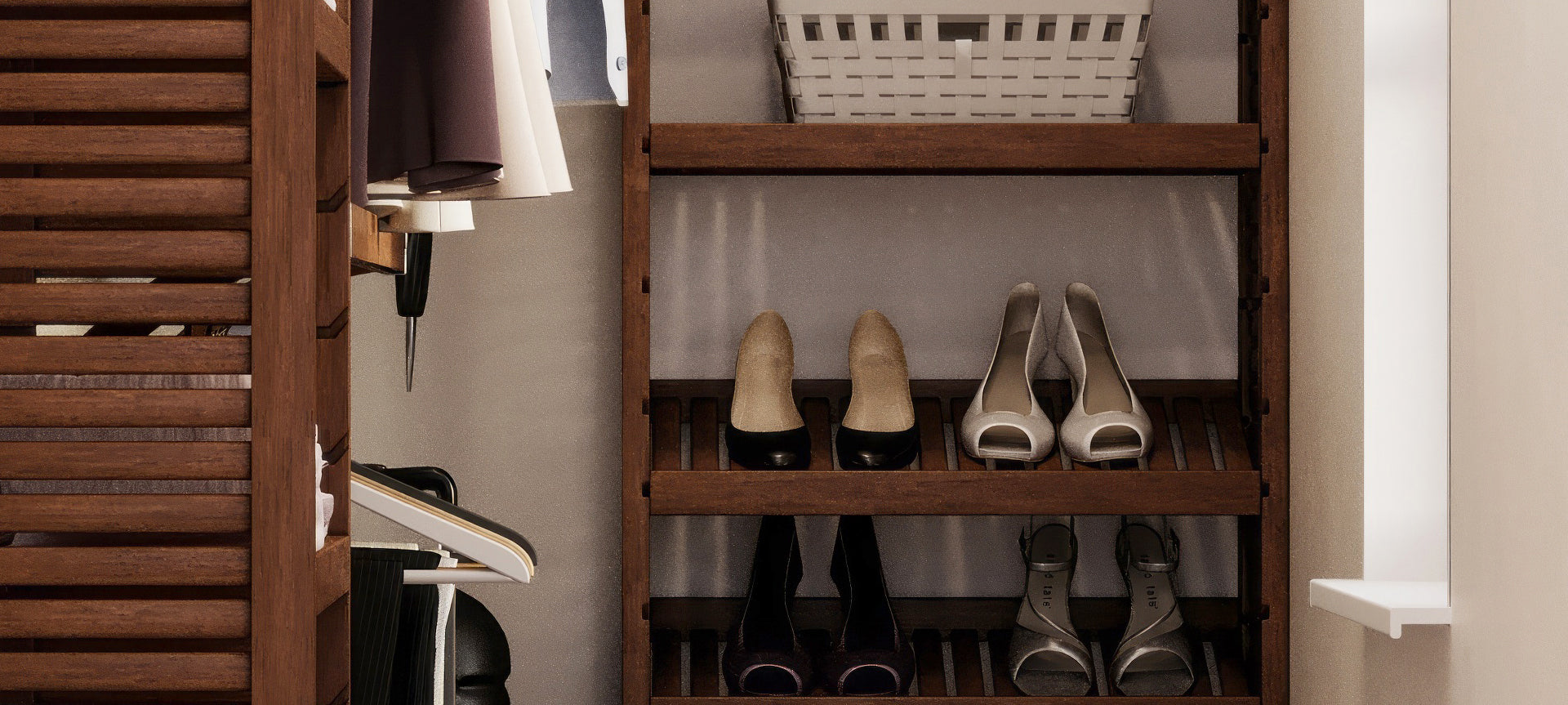"I really love these shelves. The ability to make them a regular shelf or flip them for an angled shoe shelf is so cool. Plus the angle makes it easy to grab your shoes. They look great!"